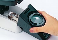 E200的目镜在同规格的显微镜中拥有更大的视场范围,并有10X(视场数为20毫米)和15X(视场数为12毫米)两种可供选择。这些目镜也允许操作者更加容易的分别调节左右位置的屈光度。此外,目镜可以安装测量尺用于长度测量。